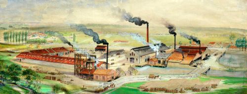 Ce document représente l'usine Lambiotte de Demeurs en 1900. En réalité, il s'agit d'une aquarelle (160x59 cm) qui est installée dans la salle des fêtes de la mairie de Prémery suite à un don des Établissements Lambiotte . En ce qui concerne la topographie des lieux, remarquez que les distances entre bâtiments ne sont pas toujours respectées. Ainsi l'ancienne caserne d'ouvriers, (au centre), se trouve bien éloignée de la salle des fêtes , l’ancienne clouterie du temps de Babaud de la Chaussade . Ce tableau a certainement été peint à distance d'après plusieurs croquis. Le nombre important de stères de bois installés au premier plan et les cinq cheminées crachant des fumées noires nous montrent à quel point l'activité de cette usine était importante. En effet, on y fabriquait le charbon de bois et on envoyait les produits chimiques dérivés du bois à l'usine de Prémery pour affinage. (acétates et pyrolignites, méthylène, acide acétique, acétone, créosote, formol). C'est en 1891 que l'entreprise Lambiotte-Frères de Prémery acquiert les bâtiments de Demeurs dans le cadre d'une vente aux enchères publiques et y installe un complexe de distillation du bois. Une centaine d'ouvriers y travaillaient en 1912 ! L'usine est revendue en 1939 et après la deuxième guerre mondiale, le site a été occupé successivement, par une scierie, une fonderie de métaux cuivreux et ensuite par un groupe de sociétés du bâtiment, dont l'entreprise Parrotta, puis actuellement par la société NTB.
