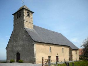 - Portail en anse de panier refait au XVIe siècle, ainsi que la partie supérieure du clocher barlong, percé de baies informes.