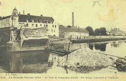 - J’ai reçu votre dernière lettre le 15, elle a donc mis 6 jours pour venir. Je suis content que vous avez trouvé le patelin, mais j’ai changé ; nous sommes maintenant à Berneuil même. Comme je vois il ne fait guère bon à monter la Loire ; ici il y a quelques porteurs de la Compagne Générale qui amènent des cailloux et quelques péniches qui font les betteraves, car c’est le principal produit du pays. Quoiqu’il y ait de l’eau, beaucoup, l’Aisne est une rivière qui ressemble plutôt à un canal large de 40 mètres au moins, mais qui ne coule pas beaucoup. Si vous avez vu le Petit Parisien du 15, vous avez dû voir : Tracy-le-Val sous les obus, eh bien j’ai vu ça moi, mais pas rien que sur le journal, je l’ai vu de mes yeux et c’est en effet un pays qui n’a guère que des pans de murs debout.